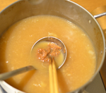 牛乳を入れる前に、鶏のおいしいだしをスープにプラスしておく合理的な手順ですね、これ。奥が深いなあ。